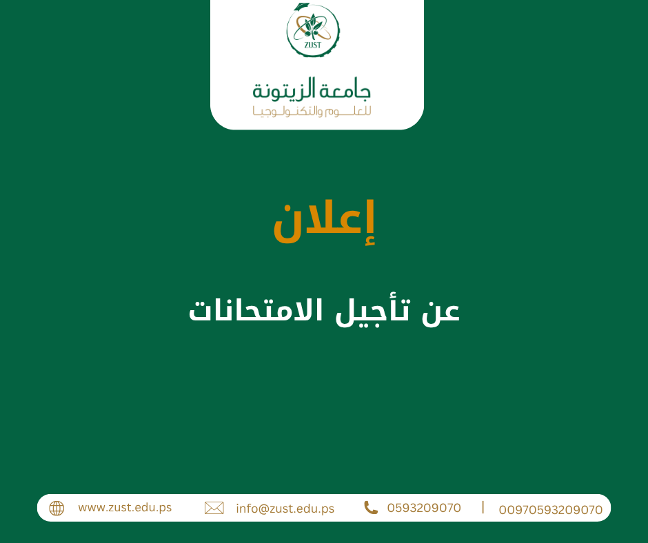 تعلن إدارة جامعة الزيتونة للعلوم والتكنولوجيا عن تأجيل الامتحانات النهائية…