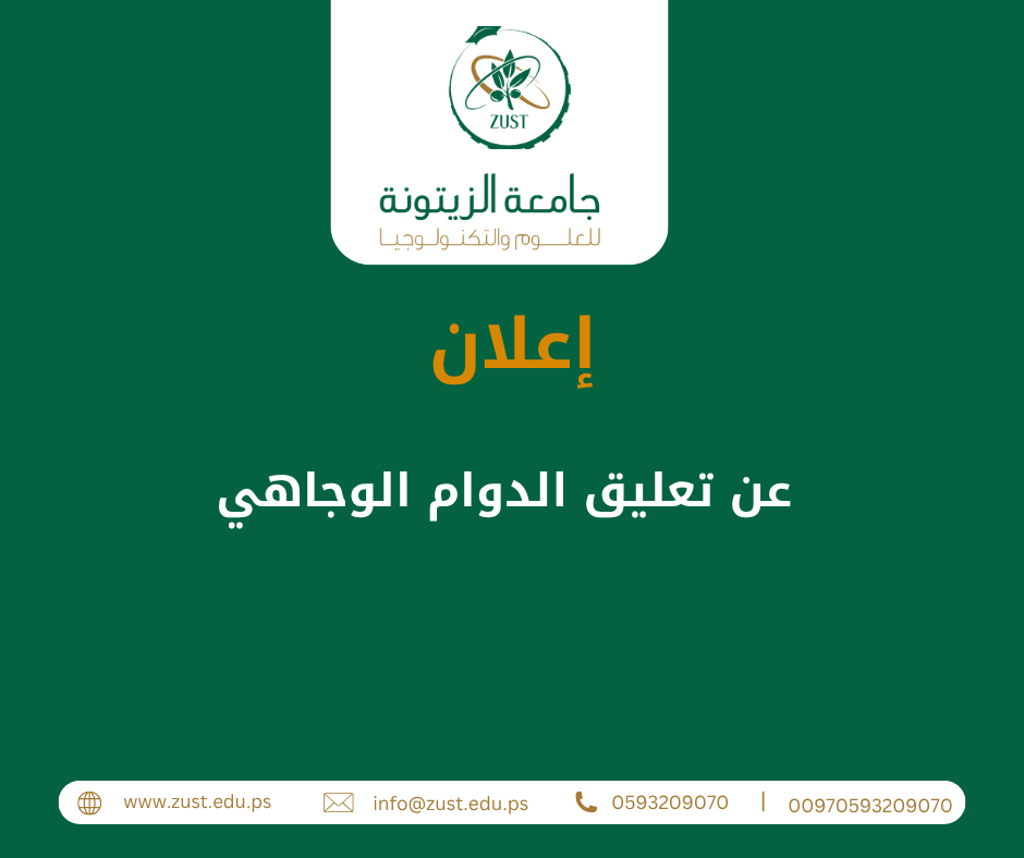 عطفاً على سلامة الطلبة وموظفي الجامعة تعلن إدارة جامعة الزيتونة…