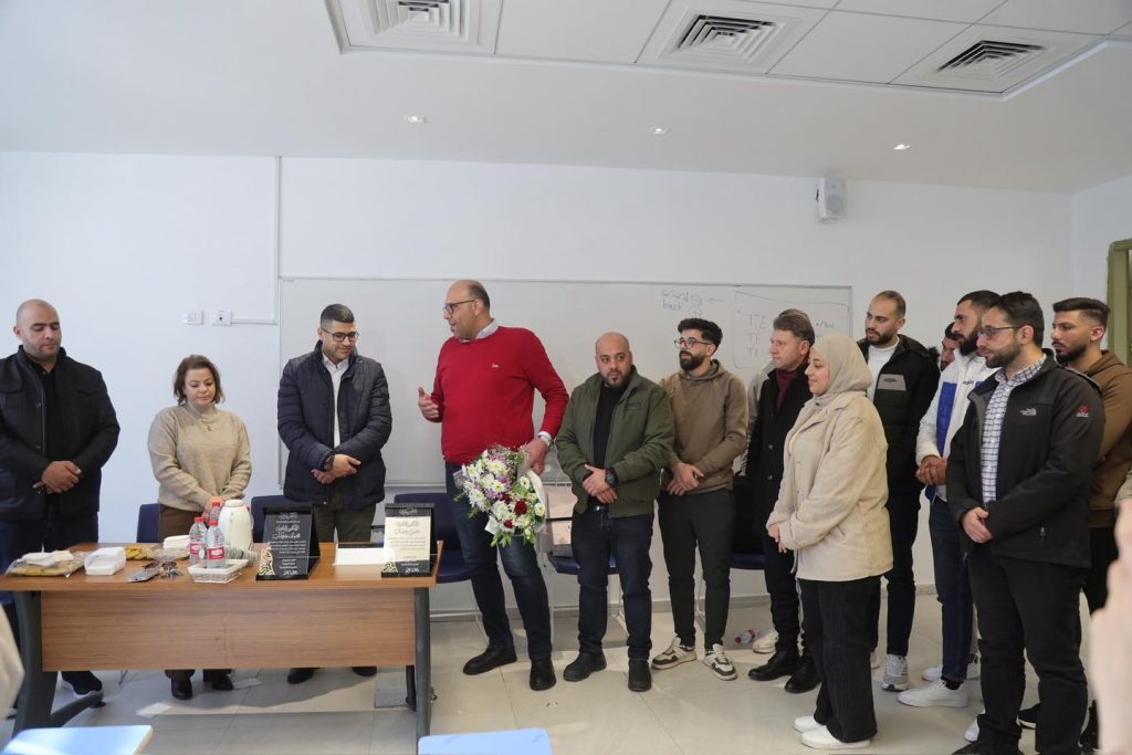 وحضر الاجتماع عن النقابة الأستاذ سعيد بشر والأستاذ رائد حوتري، وعن الجامعة دكاترة التخصص د. محمد خطاب ود. حسني حسّان، حيث تم خلال اللقاء مناقشة عدة محاور مهمة تتعلق بمسار التخصص وفرص التطوير المهني، إلى جانب تقديم نصائح وإرشادات للطلبة حول سوق العمل ومتطلباته.