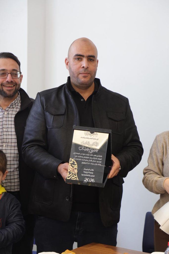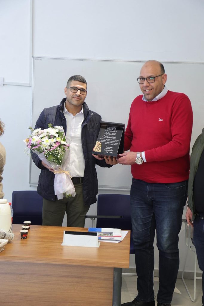 وفي ختام الاجتماع، قدّمت النقابة تكريمًا للطلاب ولفضلا د. محمد خطاب ود. حسني حسّان، تقديرًا لمساهمتهم في تنظيم اللقاء ودعم الطلبة، ضمن فعاليات تهدف إلى تعزيز التواصل بين الطلبة والمختصين في القطاع الصحي والإنساني