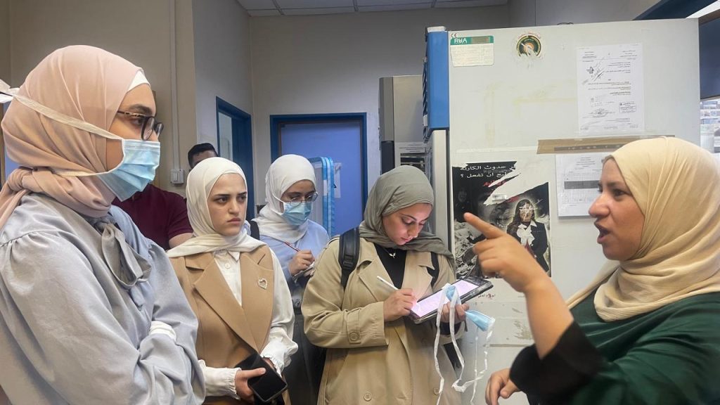 وقد استقبل الوفد مدير المستشفى الدكتور محمد الرمحي، برفقة مدير الدائرة الهندسية، حيث اصطحبوا الطلبة وأعضاء هيئة التدريس في جولة شاملة داخل المبنيين القديم والجديد للمستشفى. واطّلع المشاركون على مختلف الأقسام والمرافق الطبية، واستمعوا إلى شرح تفصيلي حول الجوانب التصميمية والفنية للمستشفى وآلية تطويره لخدمة المجتمع المحلي.